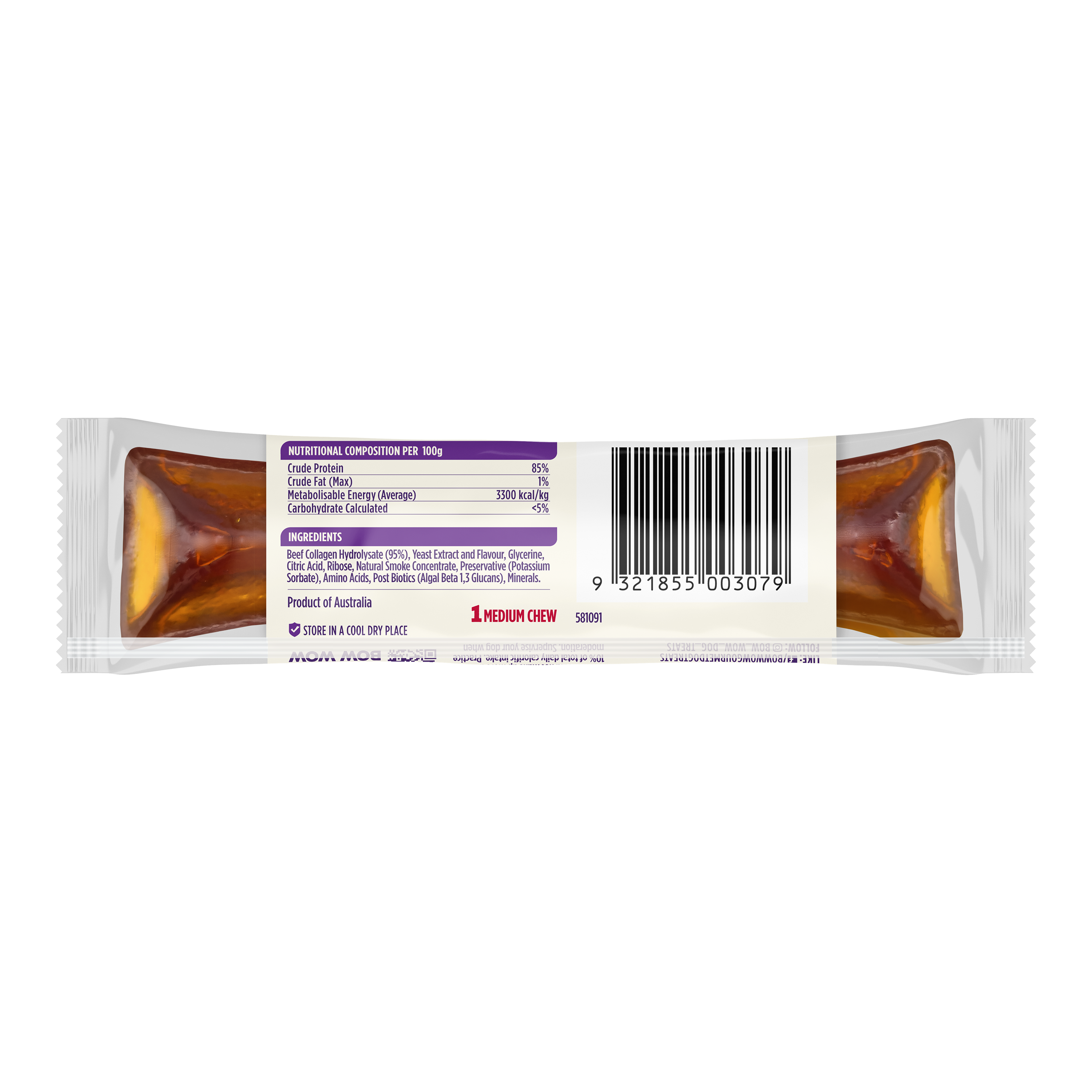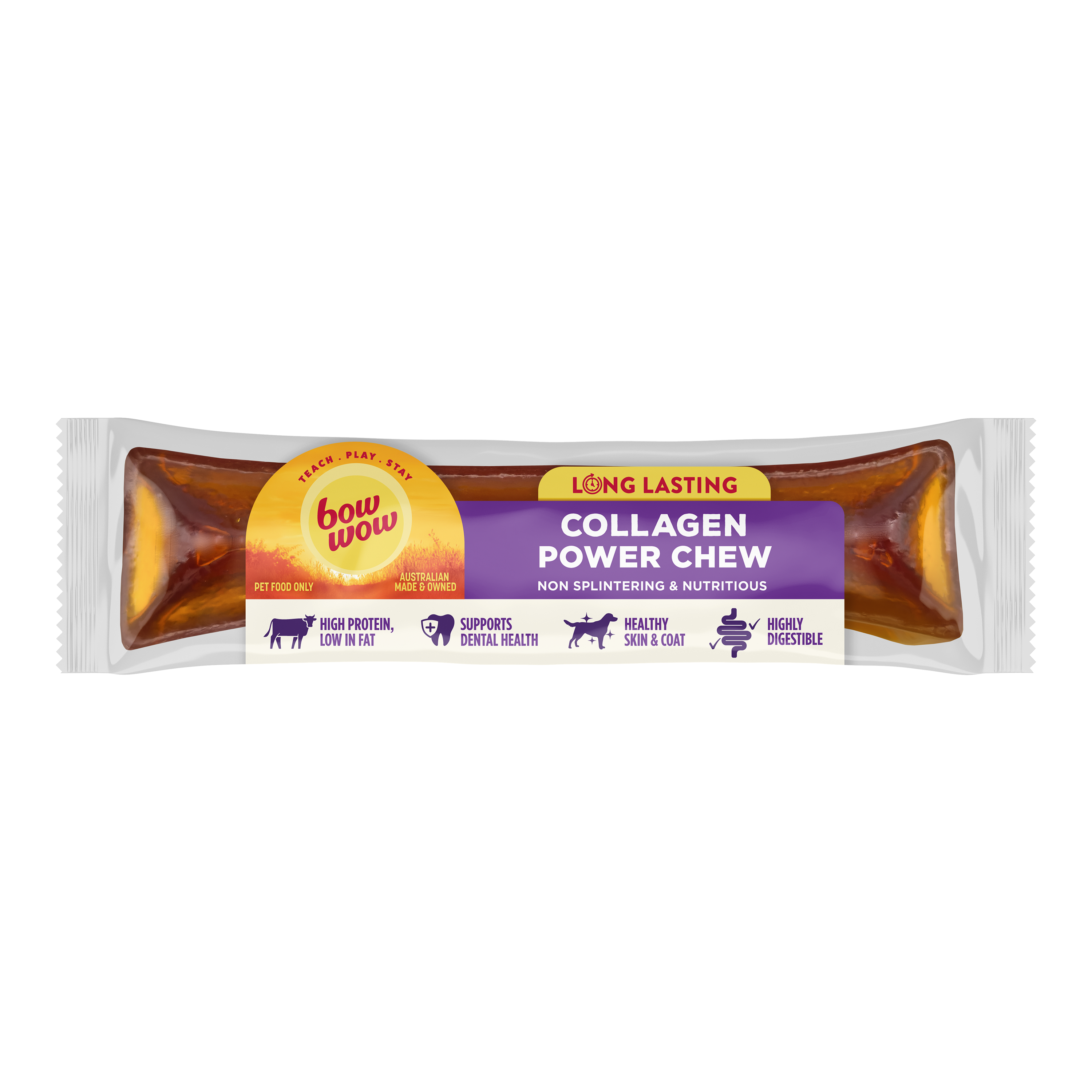 Our Collagen Power Chews are protein-rich, low in fat, and packed with nutritional benefits, keeping your dog happy, satisfied, and chewing for longer. Designed to be non-splintering, they break down gently while helping to clean teeth with every bite.