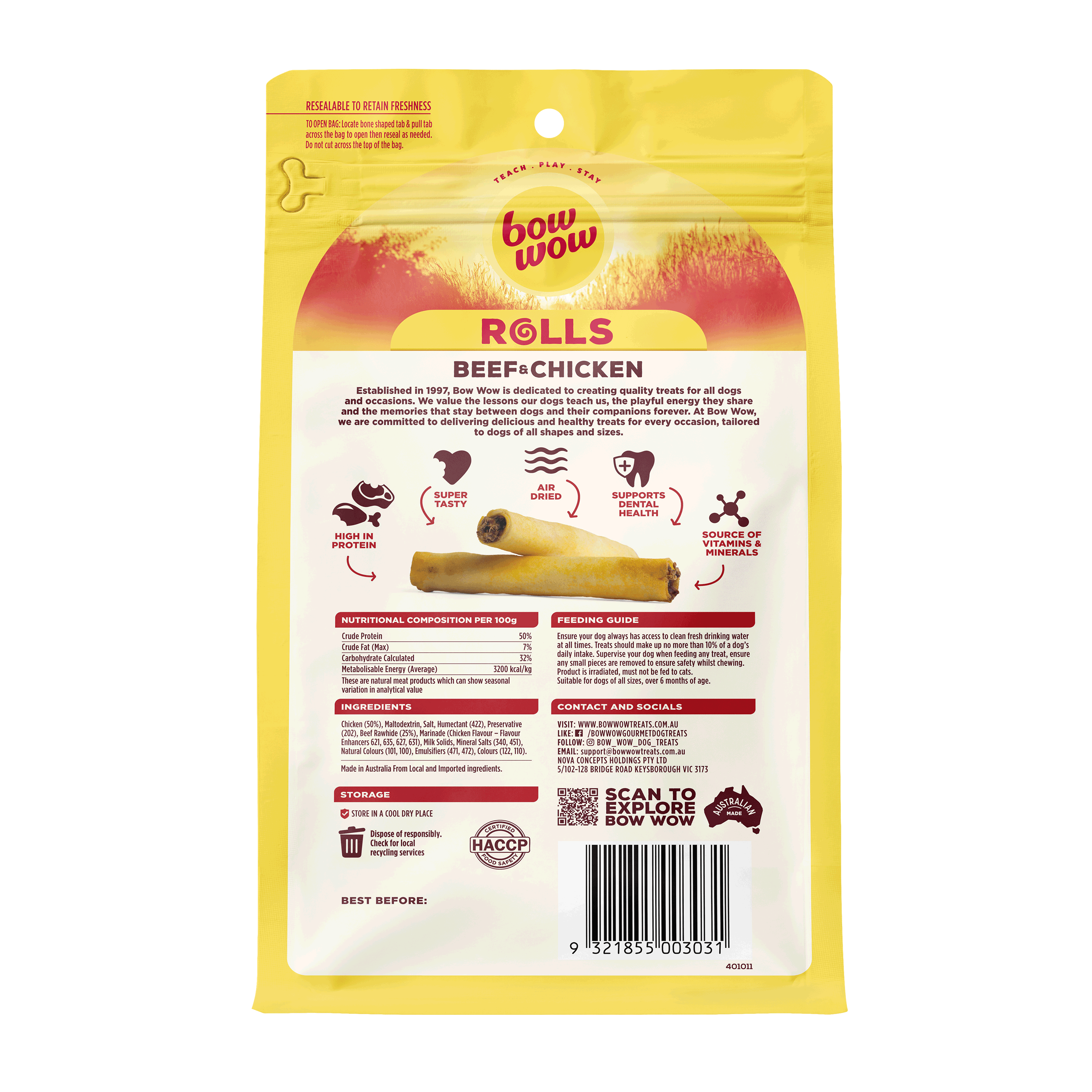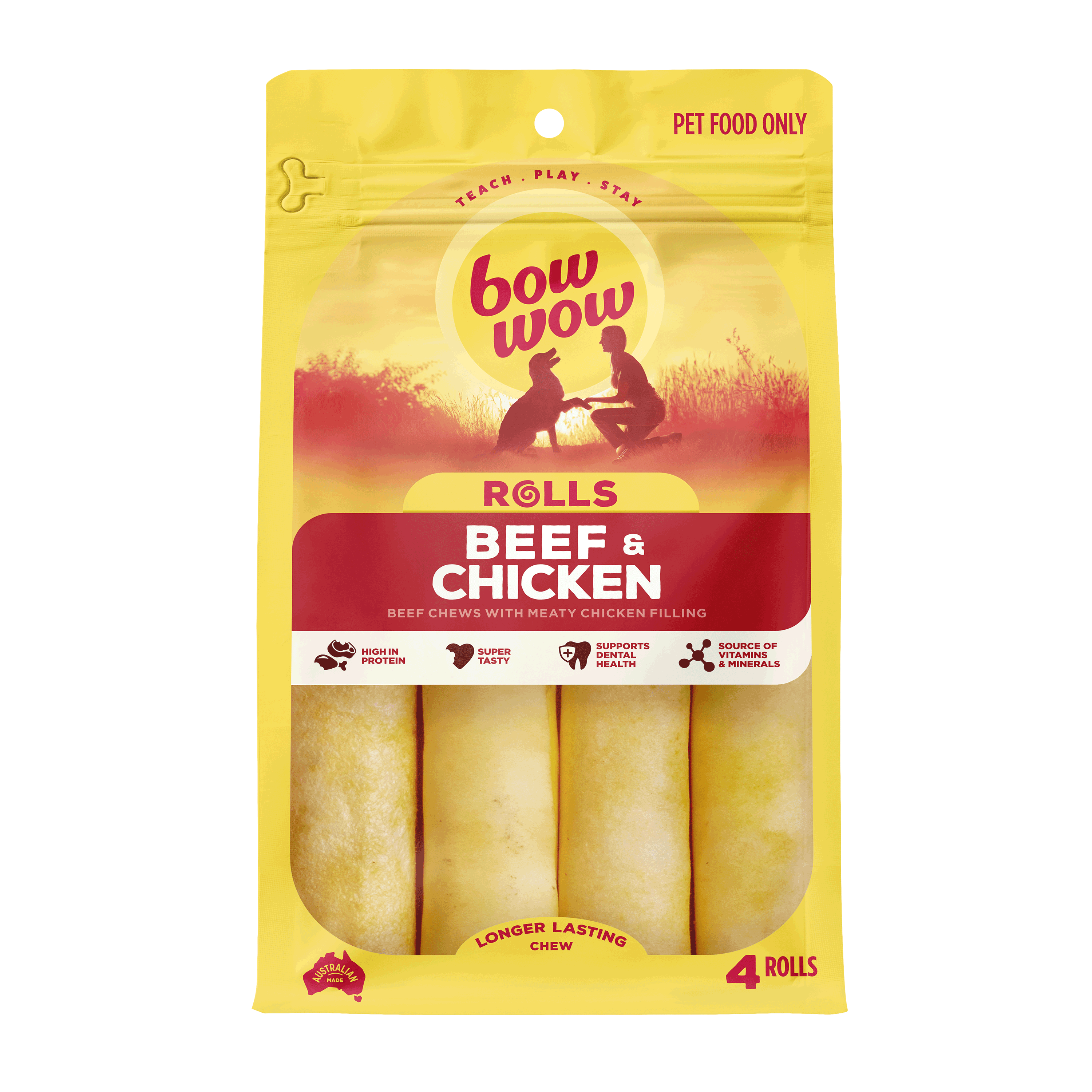 Using all natural chicken, wrapped in a beef rawhide outer for extra chewiness – this super tasty snack will keep your dog on their bestest behaviour and busy chewing for ages.
