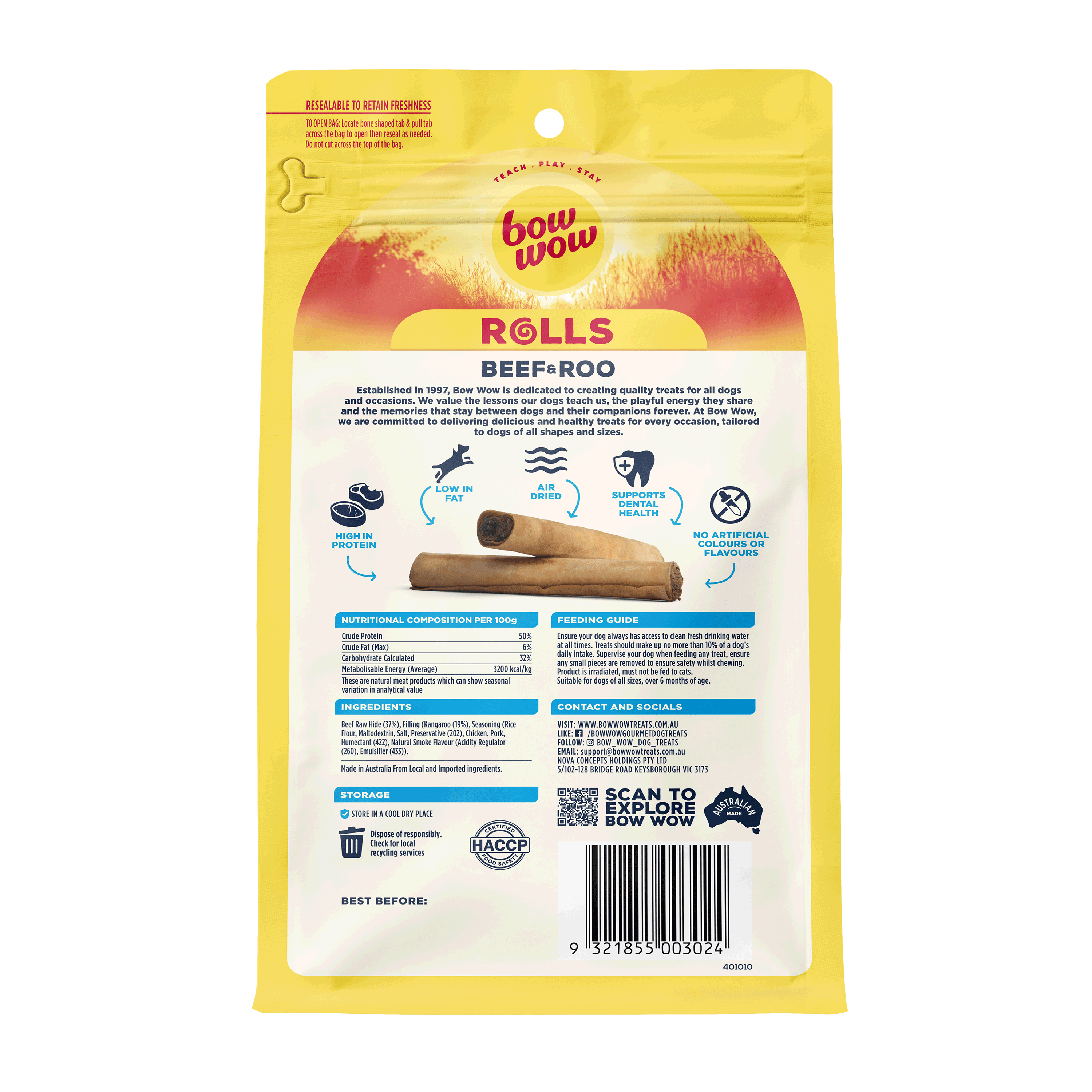 Using all natural kangaroo, wrapped in a beef rawhide outer for extra chewiness – this super tasty snack will keep your dog on their bestest behaviour and busy chewing for ages.